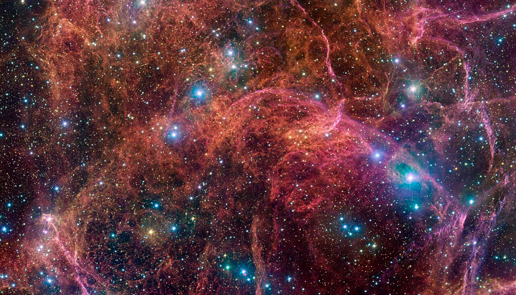 Клочковатые оранжево-розовые облака – всё, что осталось от массивной звезды, жизнь которой закончилась мощным взрывом около 11000 лет назад. Когда самые массивные звёзды приходят к концу своего существования, они часто взрываются, и этот колоссальный взрыв называется вспышкой сверхновой. Такие взрывы порождают ударные волны, которые распространяются сквозь окружающую газовую среду, сжимая её и создавая сложные волокнистые структуры. Высвобождаемая при этом энергия разогревает газовые пряди, заставляя их ярко сиять, что мы и видим на этом фото.